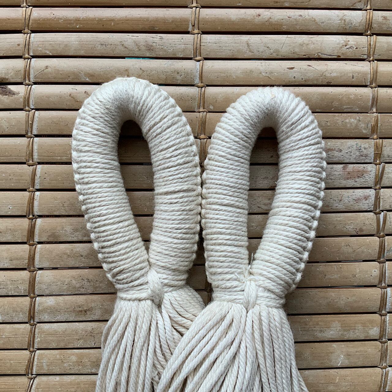 ナチュラル色のみで編み上げました。どんなインテリアにもマッチします。編み目がとても細かいので織り機で織ったような見た目に仕上がっております。