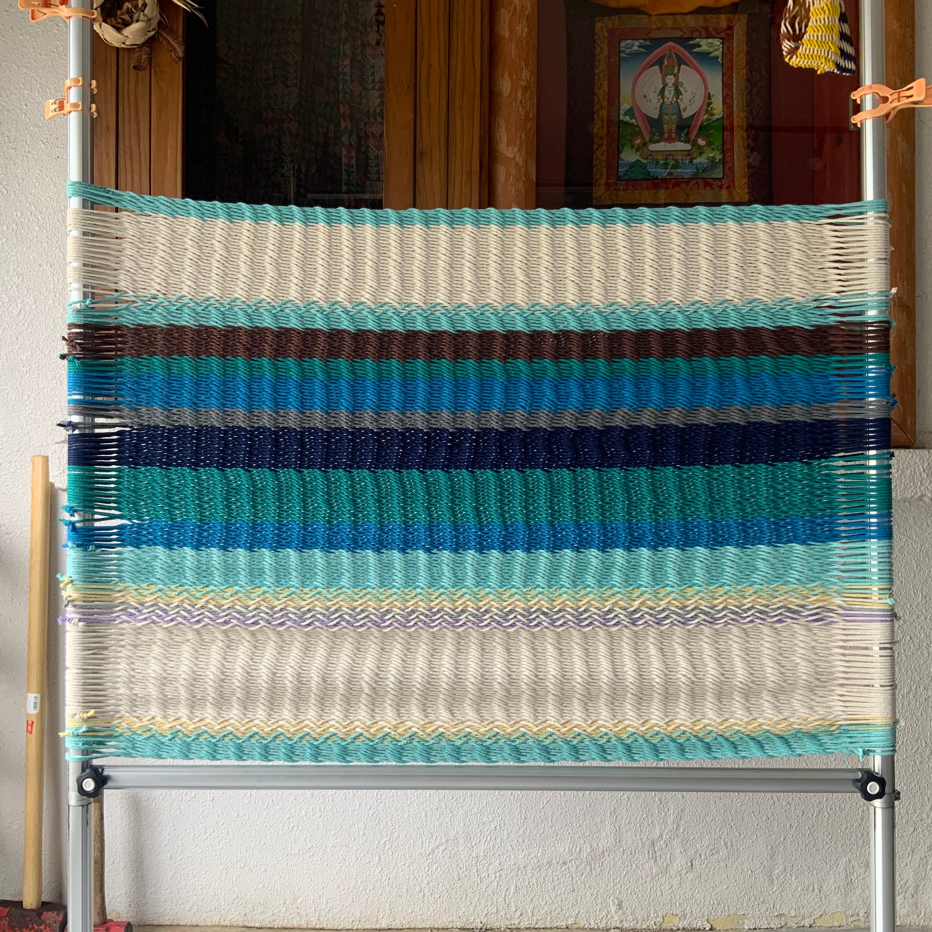 編み目が細かい分(27ループ)、摩擦にも強く、更には視覚的にも柄がくっきり浮き出て美しくです。長さも(175ライン)と長く編んでいるので長身の方でも足を伸ばして余裕のスペースがあります。